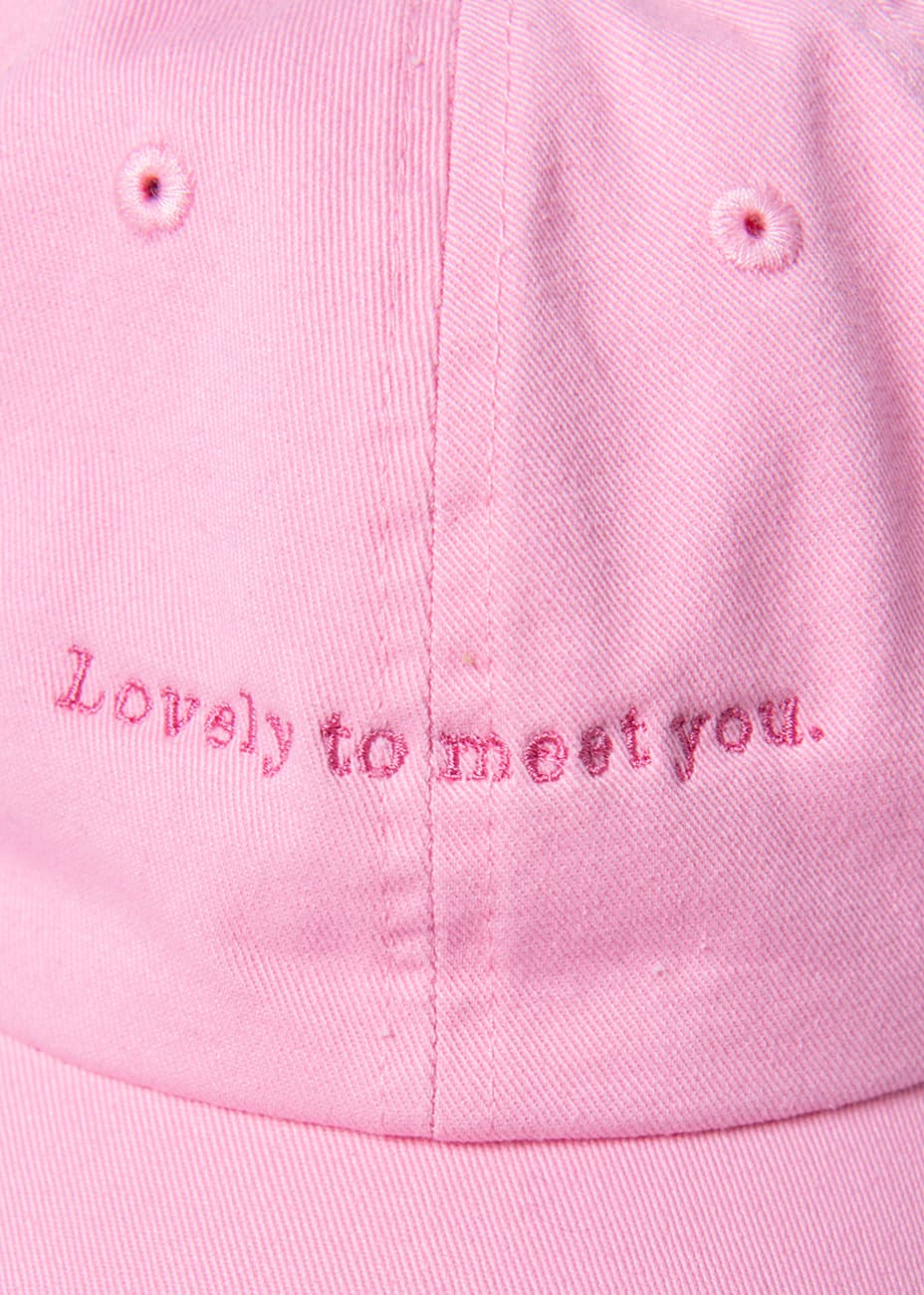 SISよりあらゆるスタイリングに合わせることができるアメリカンクラシックな新作キャップ。程よくユーズド感のあるコットンボディに、SISのコンセプトでもある、"Lovely to meet you."をフロントに刺繍し、バックにはSIS のロゴがアクセントになっています。ベースはニューヨークの老舗帽子メーカー〈newhattan〉を使用。型崩れを気にすることなくラフな雰囲気で、バックなどに入れて気軽に持ち運ぶことができます。頭周りは後ろのベルトで細かなサイズ調整が可能です。女性に限らず、幅広い方々に被っていただけます。