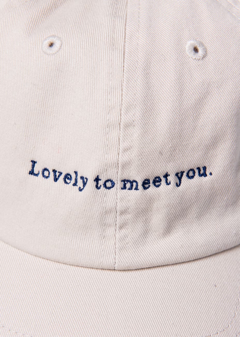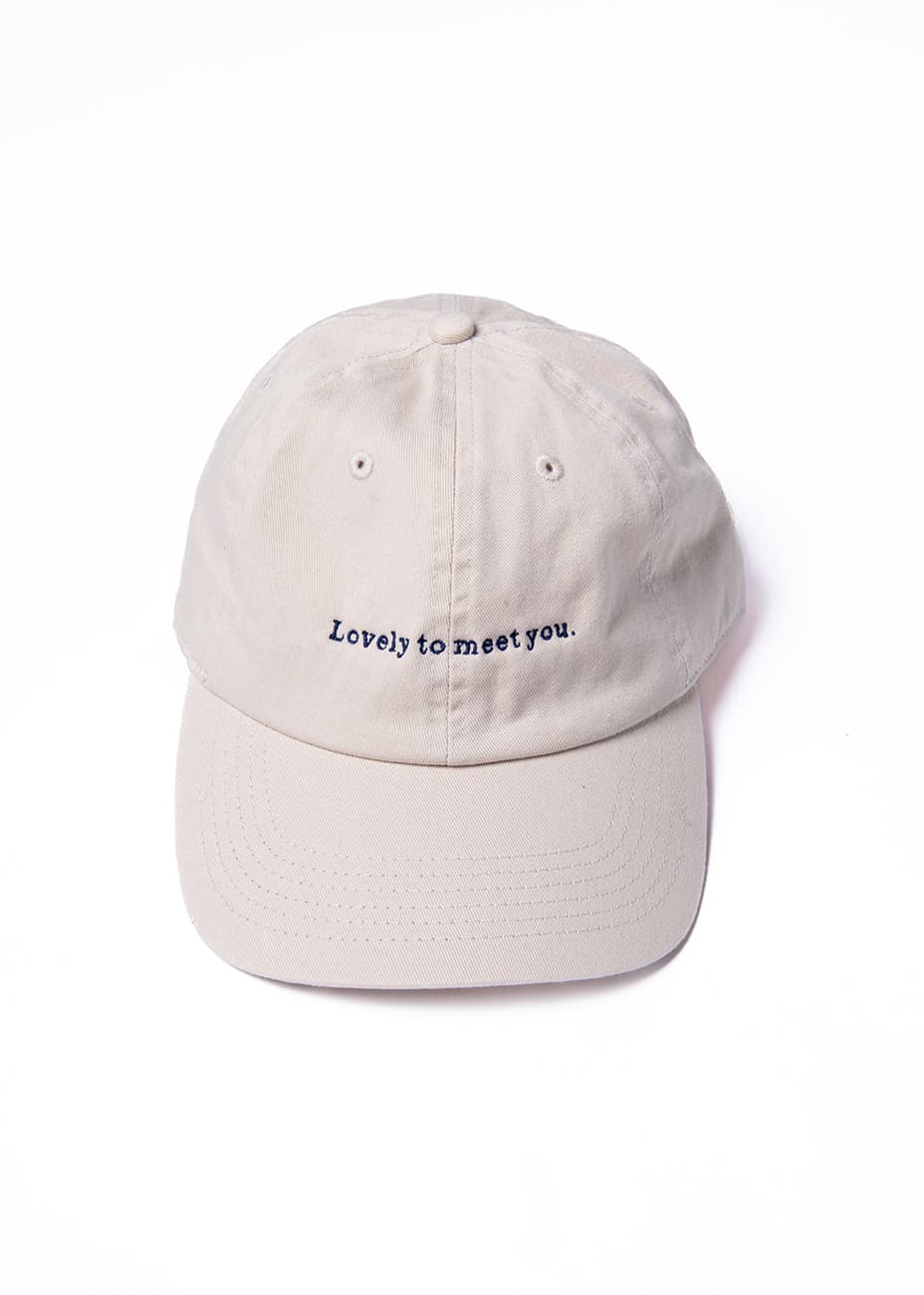 SISよりあらゆるスタイリングに合わせることができるアメリカンクラシックな新作キャップ。程よくユーズド感のあるコットンボディに、SISのコンセプトでもある、"Lovely to meet you."をフロントに刺繍し、バックにはSIS のロゴがアクセントになっています。ベースはニューヨークの老舗帽子メーカー〈newhattan〉を使用。型崩れを気にすることなくラフな雰囲気で、バックなどに入れて気軽に持ち運ぶことができます。頭周りは後ろのベルトで細かなサイズ調整が可能です。女性に限らず、幅広い方々に被っていただけます。
