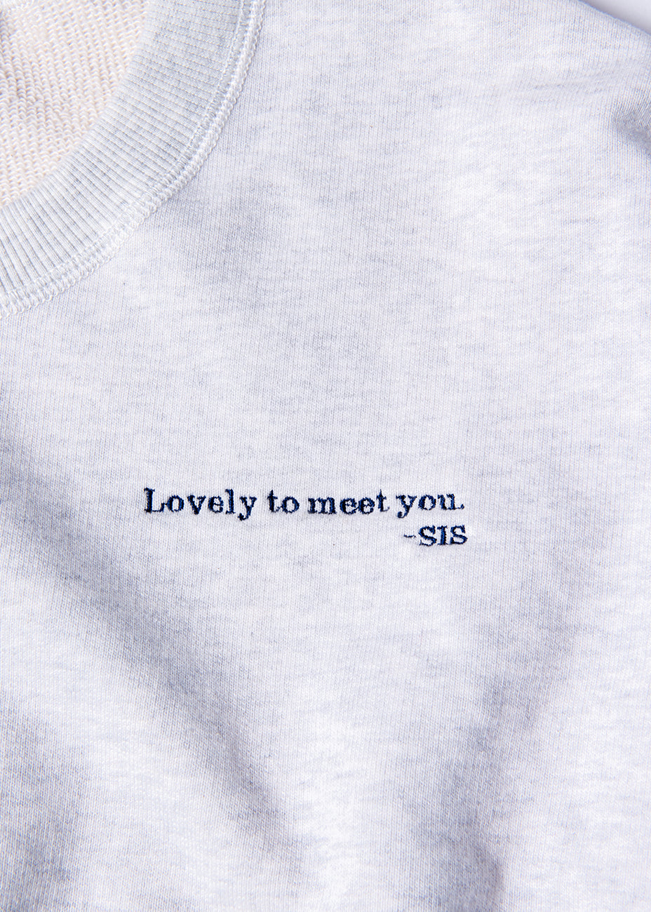 また、左胸にはSISのコンセプトでもある、"Lovely to meet you."の刺繍を施しました。