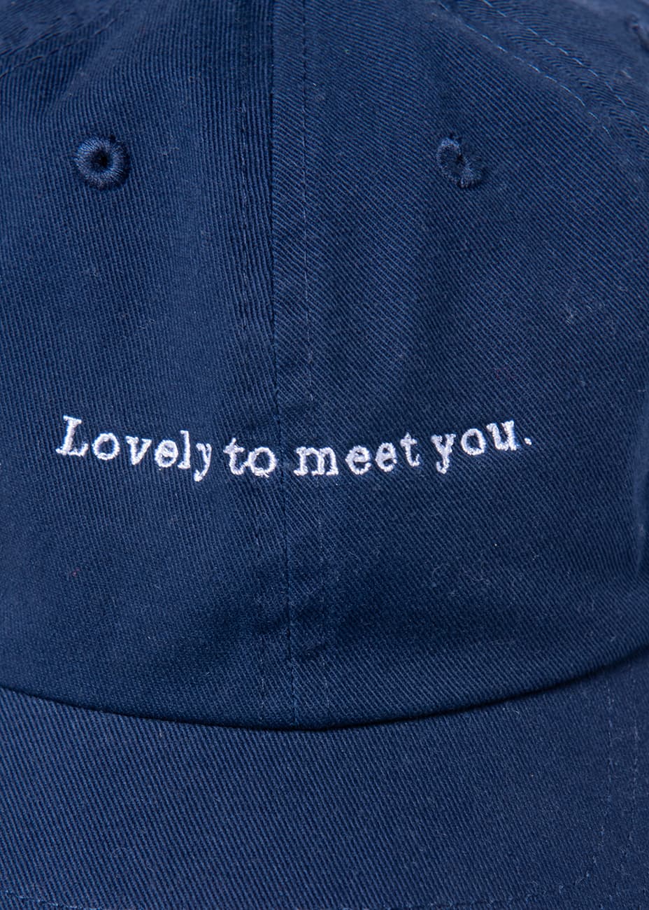 SISよりあらゆるスタイリングに合わせることができるアメリカンクラシックな新作キャップ。程よくユーズド感のあるコットンボディに、SISのコンセプトでもある、"Lovely to meet you."をフロントに刺繍し、バックにはSIS のロゴがアクセントになっています。ベースはニューヨークの老舗帽子メーカー〈newhattan〉を使用。型崩れを気にすることなくラフな雰囲気で、バックなどに入れて気軽に持ち運ぶことができます。頭周りは後ろのベルトで細かなサイズ調整が可能です。女性に限らず、幅広い方々に被っていただけます。